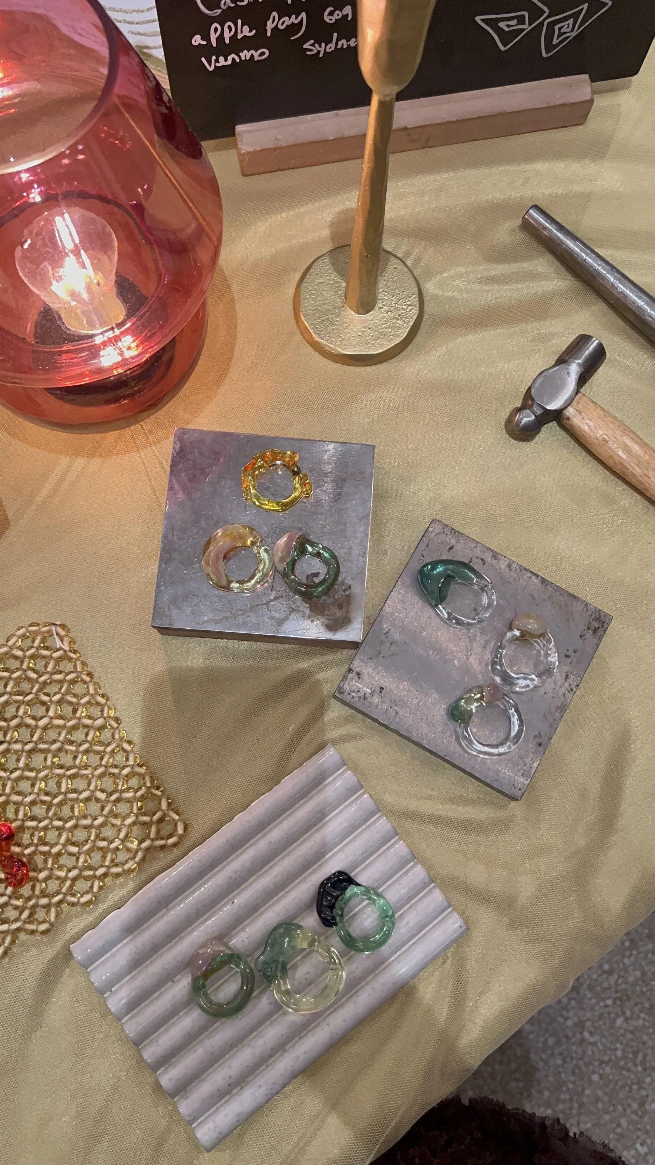 Glass/ leather Shapes $115.00 Add to Cart Added! Yellow Frosted Glass Shapes $100.00 Add To Cart Added! Brass Triangles $72.00 Add to Cart Added! Glass Shapes $150.00 Sold Out Sold Out Added! Glass Rings $65.00 View Options $110.00 Sold Out Sold Out Added!